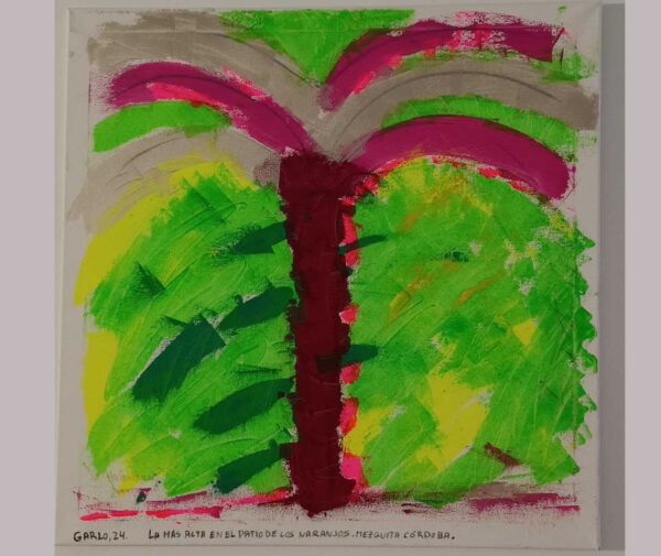 La Más Alta en el Patio de la Mezquita es una obra impresionante creada en 2024 por Garlo. Realizada en acrílico sobre lienzo, esta pieza de 60 x 60 cm captura la grandeza de la arquitectura de la Mezquita de Córdoba desde una perspectiva elevada. Los colores y texturas empleados en el acrílico aportan una sensación de altura y majestuosidad, transportando al espectador a un lugar de historia y belleza
